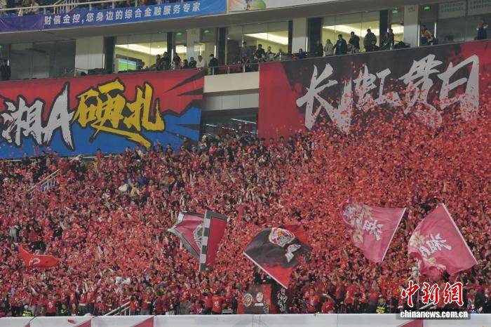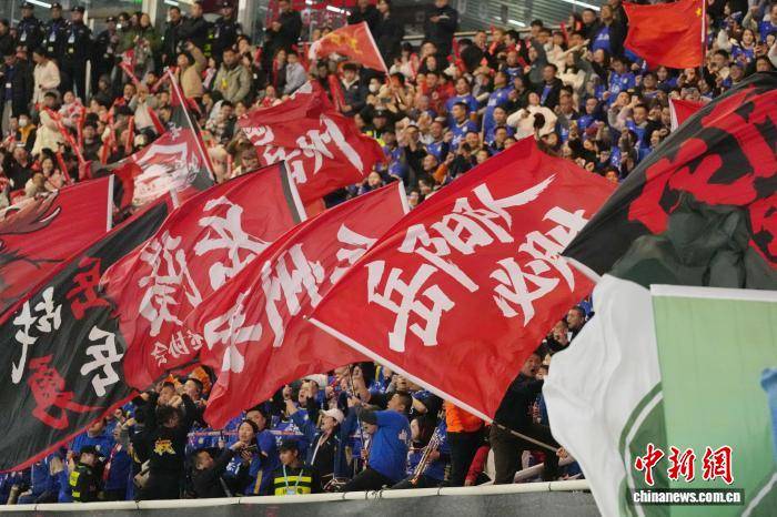 12月14日晚,2025湖南省足球联赛淘汰赛四分之一决赛在长沙进行,长沙队主场2:0击败岳阳队,成功晋级四强。图为岳阳队球迷摇旗助威。中新社记者 杨华峰 摄