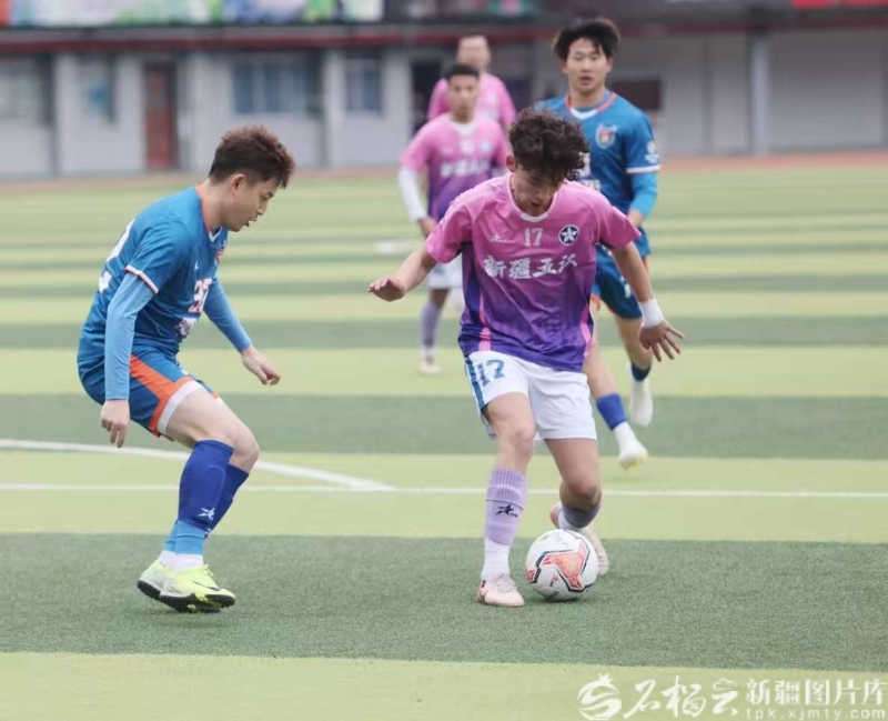 12月21日,位于湖南省湘西土家族苗族自治州的凤凰县民族体育运动中心里,首次亮相“湘超”赛场的吐鲁番市足球队与湘西州队正在比赛。湖南省援疆前方指挥部供图