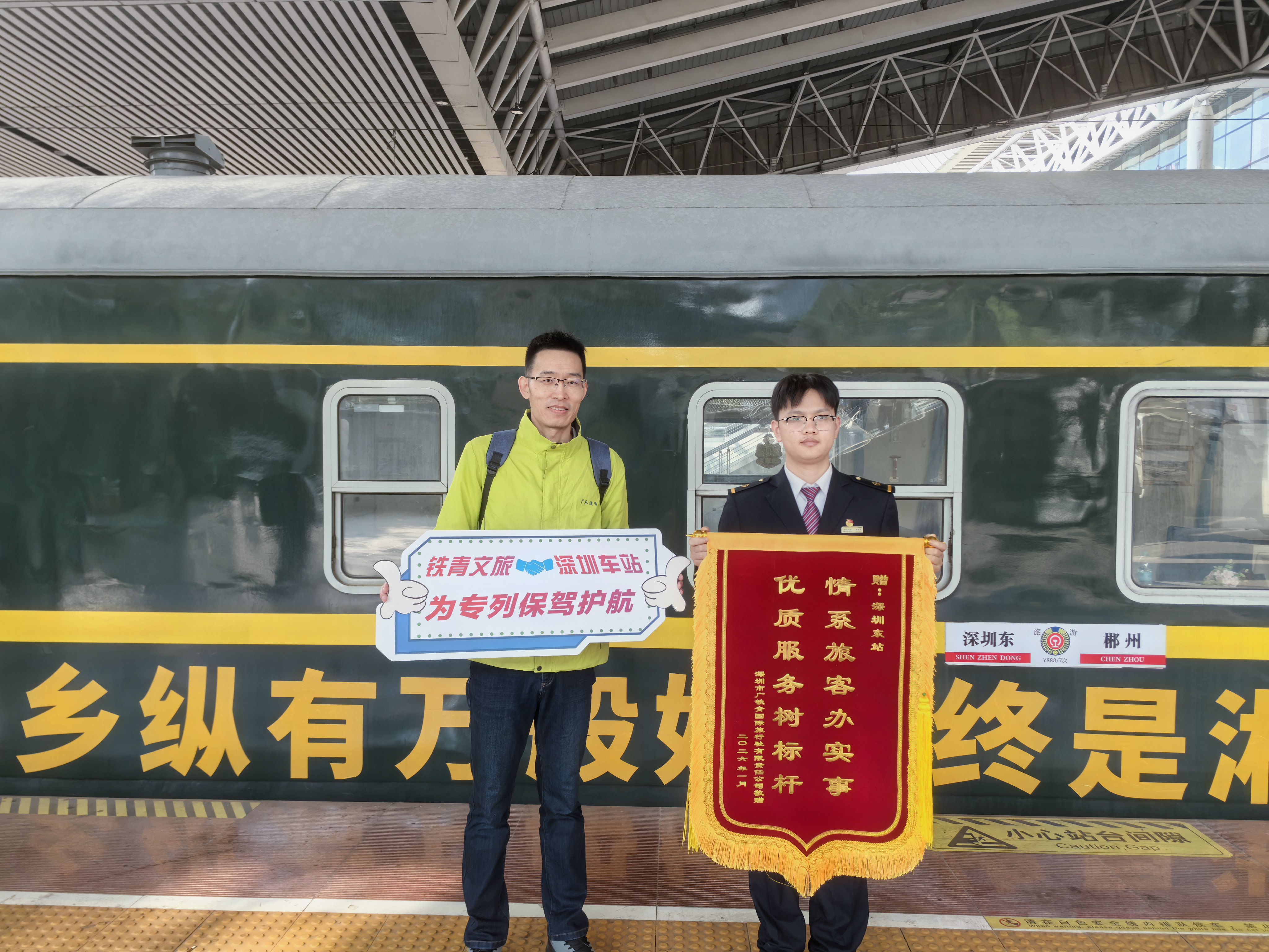 “2005年,我就是坐着‘绿皮火车’来深圳闯荡的。今天这趟专列,一下子把我的记忆拉回到了二十年前。”湖南老乡魏森沐感慨道。如今回家虽多乘高铁,但这趟充满情怀的行程,却让他倍感亲切,“一定会好好感受这次旅行,看看家乡的新面貌。”