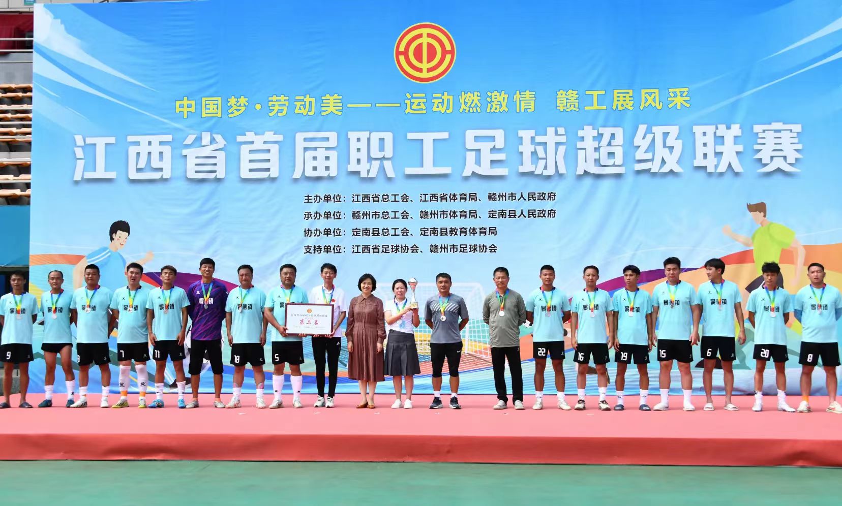 湘超联赛,湖南足球联赛,湘超赛程,湘超直播,湘超积分榜,湘超球队/湘超联赛为湖南足球迷提供最新赛程、实时比分、积分榜排名、球队信息和直播入口,掌握最新赛事动态,畅享足球激情。10月18日,“中国梦·劳动美——运动燃激情赣工展风采”江西省首届职工足球超级联赛在赣州市定南县圆满落幕。省总工会党组成员、副主席吴家杰,赣州市人大常委会副主任、市总工会党组书记、主席吴青,定南县委副书记、县长陈钰滢,省足球协会党支部副书记林毓敏,定南县人大常委会二级调研员、县总工会党组书记、主席李群出席并颁奖。市总工会党组成员、副主席何持颁奖仪式。